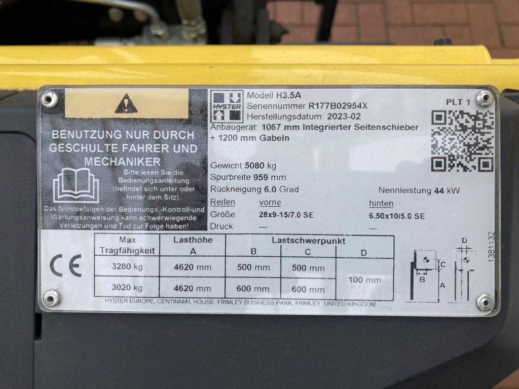 Hersteller: Hyster Typ: H 3.5A Bauart: Dieselstapler Antriebsart: Diesel Tragkraft: 3500 kg Baujahr: 2023 Stunden: 194 Zustand: sehr gut |