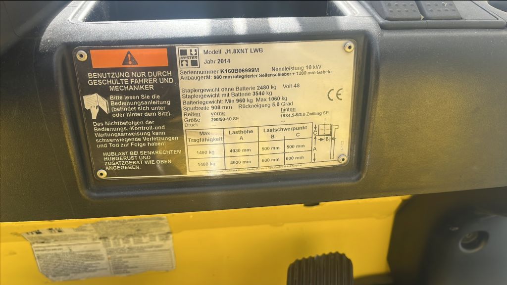Hersteller: Hyster Typ: J 1.8 XNT Bauart: Elektro 3 Rad-Stapler Antriebsart: Elektro Tragkraft: 1800 kg Baujahr: 2014 Stunden: 2416 Zustand: sehr gut |